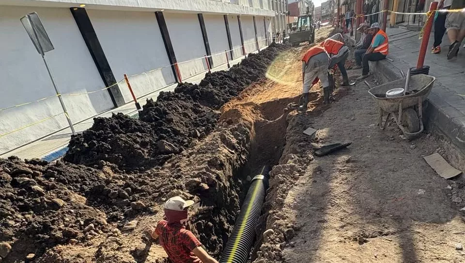 Actualmente, la obra registra un avance importante en el tramo comprendido entre la calle Hidalgo y Allende, donde se han realizado acciones de demolición del pavimento existente, construcción de la nueva red de drenaje sanitario principal.