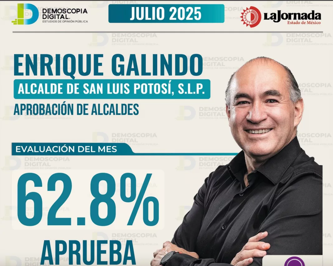 Los estudios de opinión hechos por Demoscopía Digital, confirman a Enrique Galindo Ceballos como el alcalde con mayor nivel de aprobación en el estado de San Luis Potosí, con un 62.8 por ciento de opiniones favorables de la población.