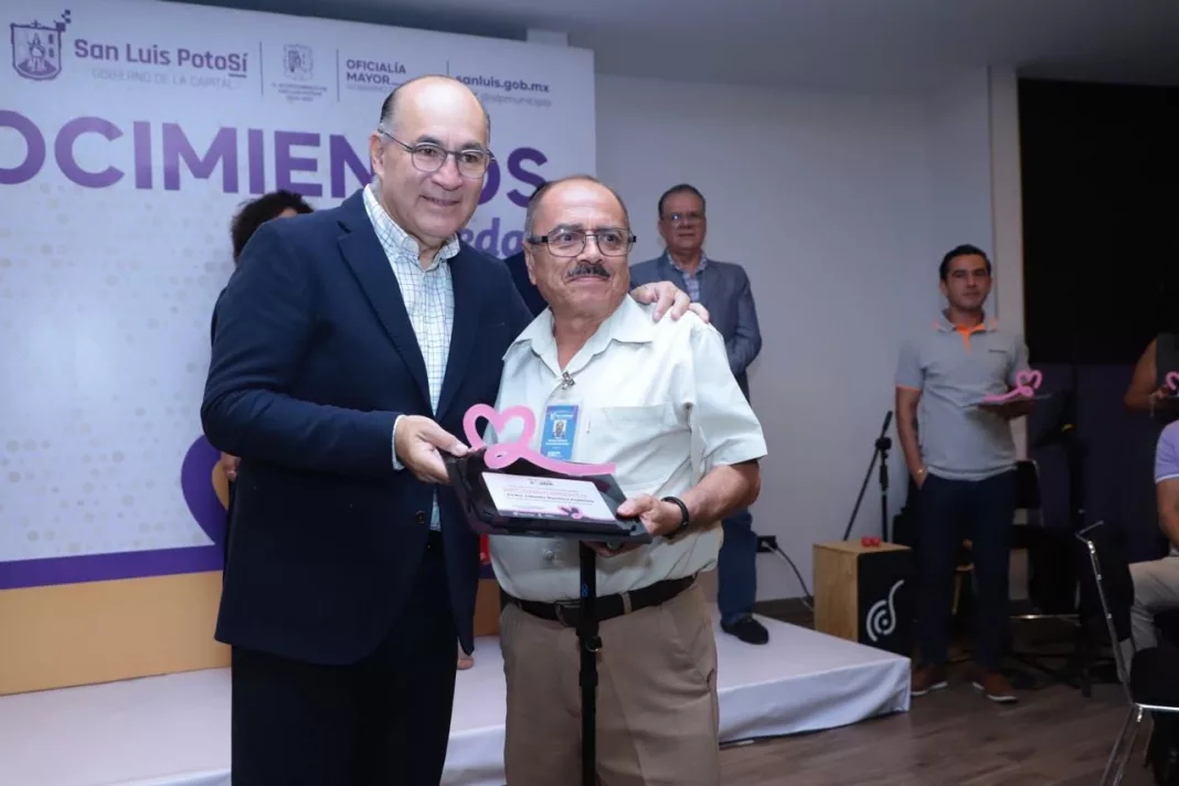 El Alcalde Galindo Ceballos recordó que en trienios anteriores no eran regulares los aumentos salariales, prestaciones, ni tampoco este tipo de reconocimientos para hacer patente los años de servicio a favor de San Luis Potosí, por lo que se comprometió a saldar pendientes “para ser solidarios con nuestras colaboradoras y colaboradores, a la par de que Cabildo ya está sensibilizado para continuar con las jubilaciones”.