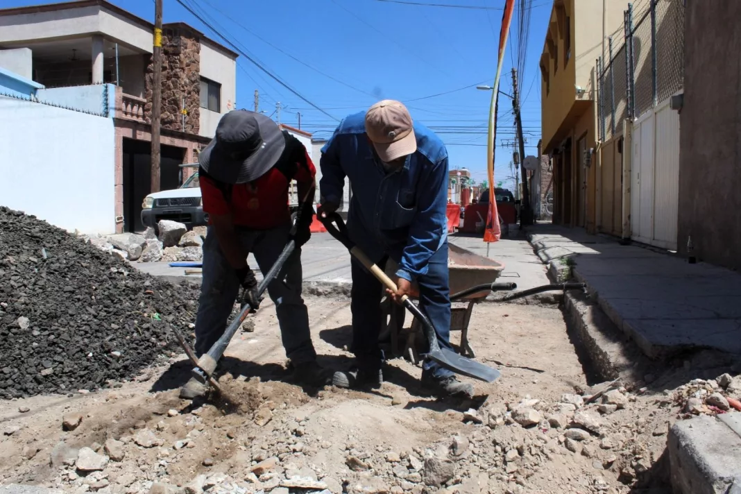 Este viernes, una de las atenciones prioritarias se realizó en la calle Villerías, en la colonia El Saucito, donde se rehabilita la vialidad con personal y maquinaria especializada intervienen en la zona para dejarla en óptimas condiciones de uso.