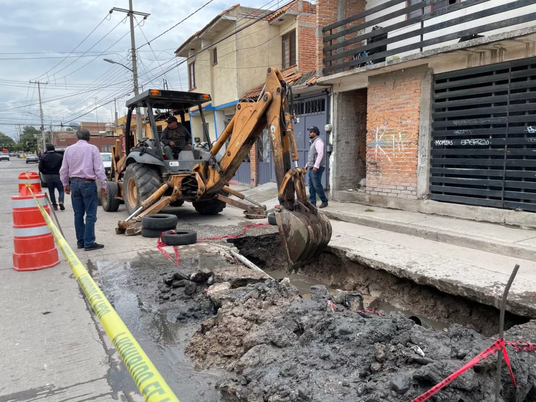 Por instrucciones del Presidente de la Junta de Gobierno de Interapas y Alcalde de la Capital, Enrique Galindo Ceballos, el Organismo Operador de Agua y la Dirección de Obras Públicas del Ayuntamiento de San Luis Potosí, de manera inmediata dieron inicio los trabajos de rehabilitación en la calle de Villerías en la colonia San Ángel, donde por la mañana se detectó un socavón debido al colapso de una línea del drenaje.