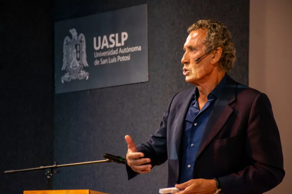 El fútbol es el fenómeno cultural más grande que existe y el primer tema de conversación en todo el mundo; sirve para romper el hielo en cualquier ámbito, por lo que es uno de los mejores vehículos de comunicación, afirmó Jorge Valdano Castellanos, exfutbolista argentino y campeón del mundo en la copa México 1986, durante la conferencia “Los 11 poderes del líder”, impartida en el marco del 40 aniversario de la Facultad de Ciencias de la Comunicación de la UASLP.