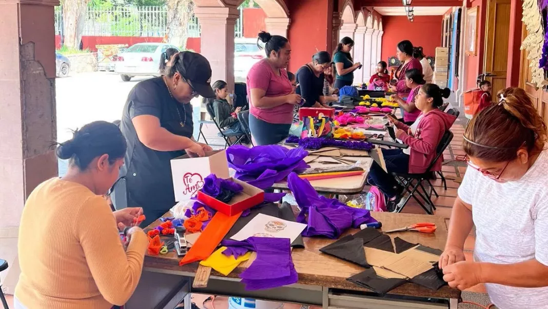 Con motivo del próximo 2 de noviembre, Día de Muertos, la Delegación La Pila del Ayuntamiento de San Luis Capital organiza talleres en sus oficinas municipales, donde personas de todas las edades elaboran flores de papel, calaveritas y otros adornos típicos que llenan de color esta tradicional festividad mexicana.