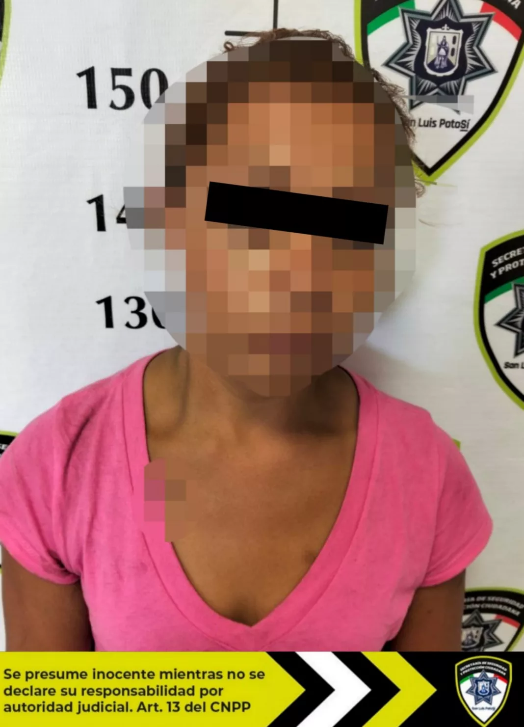 Ante estos hechos, Luisa Nayelli «N», de 30 años originaria de Soledad de Graciano Sánchez, fue informada del motivo de su detención y trasladada al Centro de Internamiento Municipal para su certificación médica.